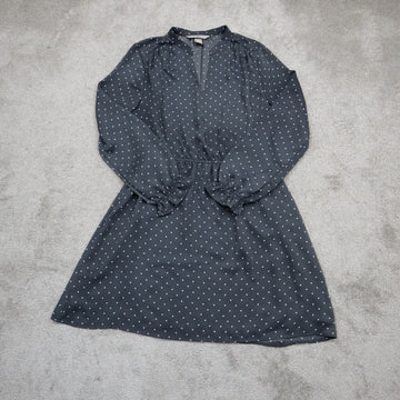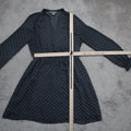H&M Womens Fit & Flare Dress Polka Dot Puff Sleeve Split V Neck Black Size 8