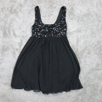 H&M Womens Fit & Flare Dress Sleeveless Square Neck Sequin Pleated Black US 4