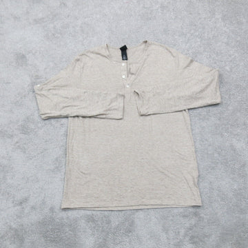 H&M Womens Henley Blouse Top Long Sleeve Front Button Beige Size Medium