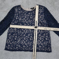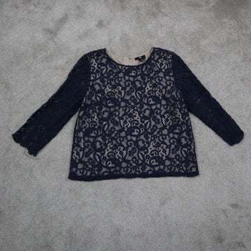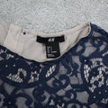H&M Womens Lace Detail Blouse Top Back Button Round Neck Black/Cream Size Small