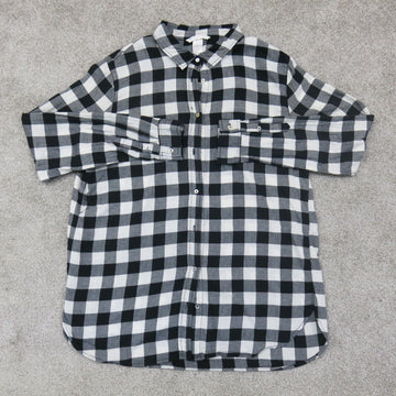 H&M Womens Plaid Button Down Shirt Long Sleeve Collared Neck Black/White Sz 10