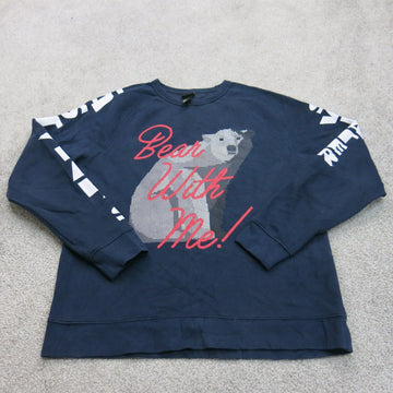 H&M Womens Pullover Sweater Knitted Long Sleeves Bear Print Navy Blue Size Large