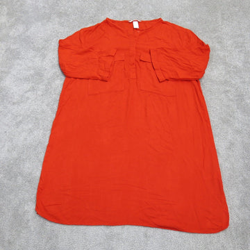 H&M Womens Tunic Dress 3/4 Sleeves Henley Neck Pockets Solid Red Size 12