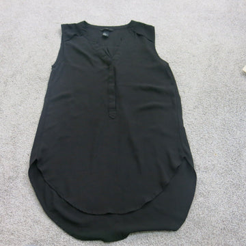H&M Womens Tunic Tank Top V Neck Sleeveless High Loew Hem Solid Black Size 2
