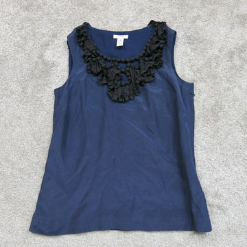 J. Crew Women Pullover Blouse Top Sleeveless Ruffle Scoop Neck Sleeveless Blue 0