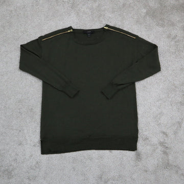 J Crew Women Pullover Sweatshirt Shoulder Zip Stretch Long Sleeve Green Size XXS