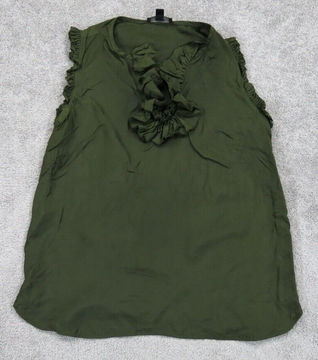 J Crew Womens Party Cocktail Frill Neck Blouse Top Sleeveless Olive Green Size 2
