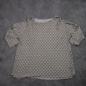 J. Jill Womens Easy Elliptical Print Blouse Top Half Sleeve White Brown Size L