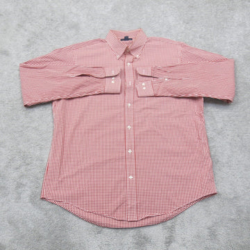 Lands End Mens Check Button Down Shirt Long Sleeves Red White Size Large
