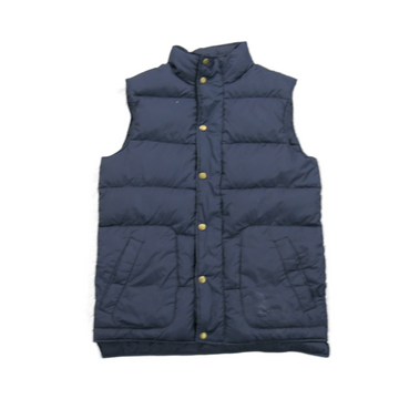 Lands End Mens Puffer Vest Jacket Mock Neck Pockets Front Button Blue Size Small