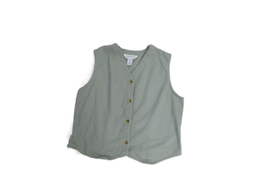 Lands End Women Knit Vest Sleeveless Button V Neck 100% Cotton Green Size 14 Reg