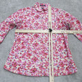 Lands End Womens Floral Button Up Shirt Top Long Sleeves Pink White Red Size 2