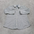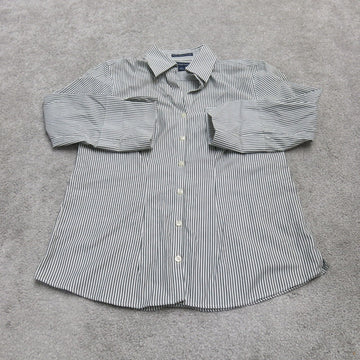 Lands End Womens Striped Button Up Shirt Top Long Sleeve White Green Size 2