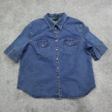 Lauren Jeans Co Mens Denim Button Up Shirt Half Sleeve Two Pockets Blue Size 20W