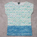 Lauren Jeans Co Womens Knitted Top Floral Short Sleeves Cotton Blue/White SZ S