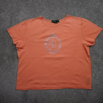 Lauren Ralph Lauren Womens Casual T Shirt Top 100% Cotton Short Sleeve Peach L
