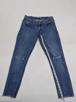 Levi's 524 Womens Denim Jeans Too Super Low Slim Distressed Raw Hem Blue Size 7M