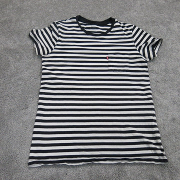 Levis Women Casual T Shirt Stripe Short Sleeve Crew Neck Black/White Size Small