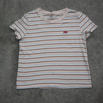 Levis Womens Casual T Shirt Top Short Sleeve Stripe Pearl Poppy Red Size S