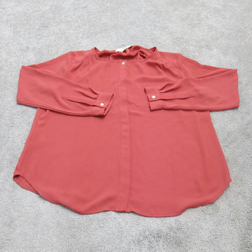 Loft Womens Blouse Shirt Top Long Sleeves Round Neck Pockets Dark Red Size SP