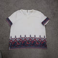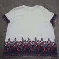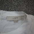 Loft Womens Blouse Top Crew Neck Floral Hem Short Sleeve White Size Large