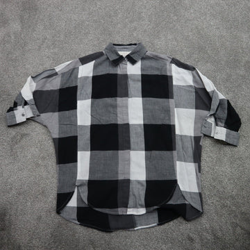 LOFT Womens Casual Button Up Plaid Shirt Top Dolman Sleeve Black White Size XS