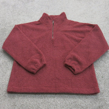 Loft Womens Full Zip UP Fleece Jacket Casual Long Sleeves Mock Neck Red Size M