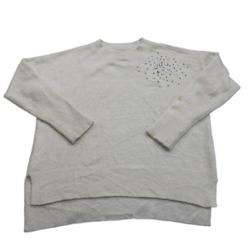 Loft Womens Knitted Sweater Long Sleeve Crew Neck Side Slit White Size Small