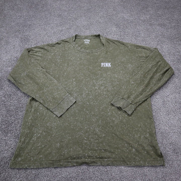 love Pink Mens Pullover T Shirt Sleeve Crew Neck Long Sleeve Dark green Size XL