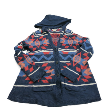 Lucky Brand Womens Cardigan Sweater Hooded Long Sleeve Pockets Blue Red Size S