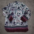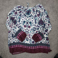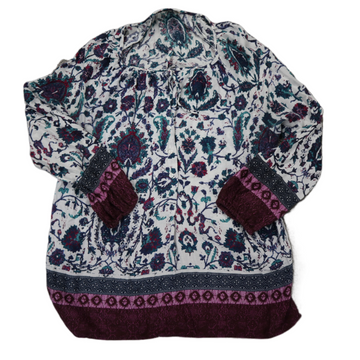 Lucky Brand Womens Floral Tunic Blouse Top Long Sleeve White Maroon Size Large