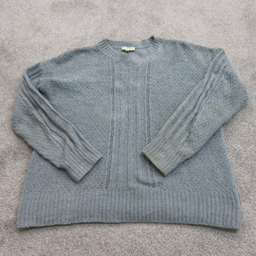 Lucky Brand Womens Pullover Knitted Sweater Long Sleeves Crew Neck Gray Size M