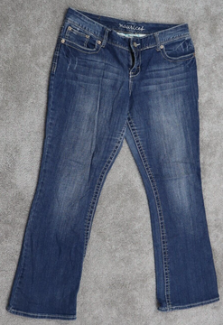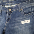 Maurices Womens Bootcut Denim Jeans Mid Rise Blue Size 10 Embellished Pockets