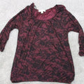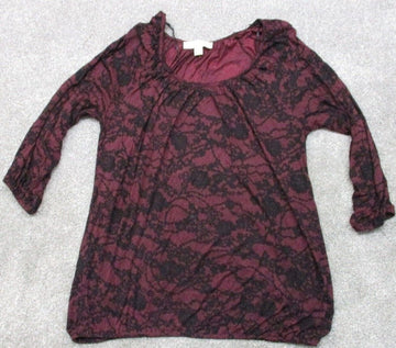Michael Kors Blouse Top Women's Medium M Maroon Black Drawstring Scoop Neck