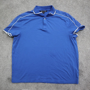 Michael Kors Men Polo Shirt Short Sleeve Knit Collared Front Button Blue Size XL
