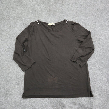 Michael Kors Women Pullover T Shirt Top Crew Neck 3/4 Sleeve Dark Brown SZ XL