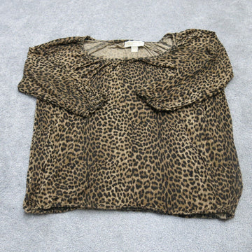 Michael Kors Womens Blouse Top 3/4 Sleeve Round Neck Black Brown Size Medium