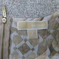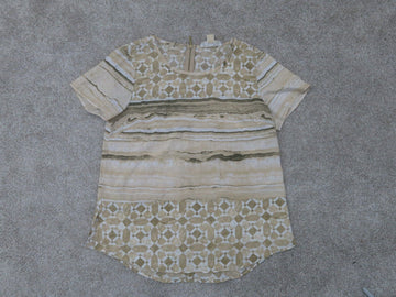 MICHAEL KORS Womens Blouse Top Abstract Short Sleeve Back Zip Beige Green Size 6