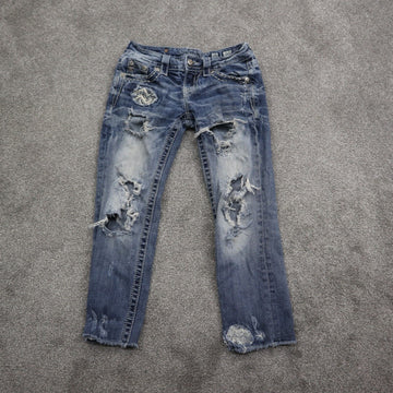 Miss Me Womens Distressed Cropped Denim Jeans Stretch Low Rise Blue Size 25