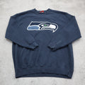 NFL Mens Seattle Seahawks Pullover Knitted Sweater Long Sleeve Navy Blue Size XL