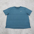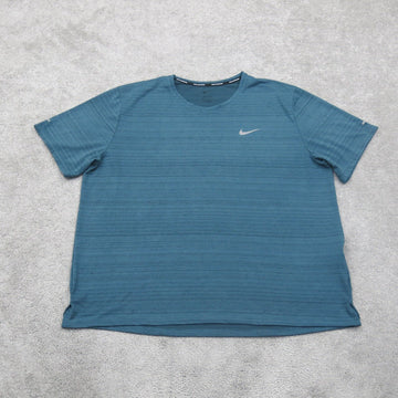Nike Dri Fit Mens Crew Neck Sports T Shirt Short Sleeves Stripped Blue Logo XL