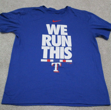 Nike Dri Fit Sports T-Shirt Men's Medium Blue White We Run This Graphic Shirt