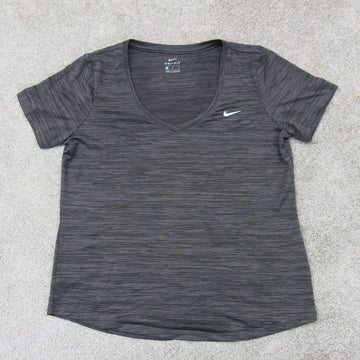 Nike Dri Fit Womens Deep V Neck T Shirt Top Short Sleeves Logo Gray Size Medium