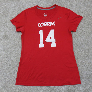 Nike Dri Fit Womens Pullover T-Shirt Short Sleeves Scoop Neck Red Size Small