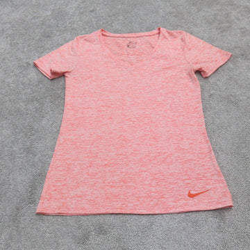Nike Dri Fit Womens V Neck T Shirt Top Short Sleeves Logo Heather Pink Size XS