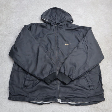 Nike Mens Full Zip Up Windbreaker Hooded Jacket Pockets Logo Black Size Large