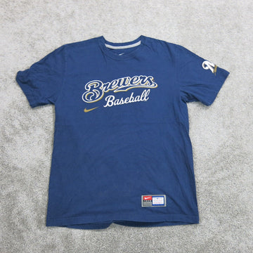 Nike Men's Pullover T Shirt Brewers Baseball Short Sleeve Round Neck Blue Size M