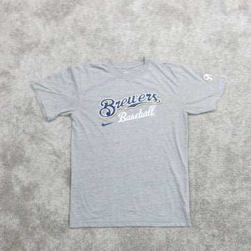 Nike Mens T-Shirt Short Sleeve Crew Neck Tee Brewers Baseball Heather Gray SZ L