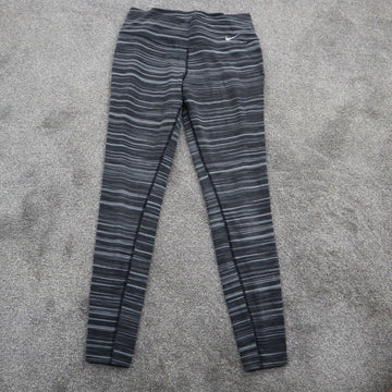 Nike Women Striped Legging Dri Fit Elastic Waist Pull On Black Gray Size Medium