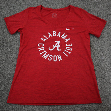 Nike Womens Alabama Tide Crimson V-Neck T Shirt Short Sleeves DRI FIT Red Size S